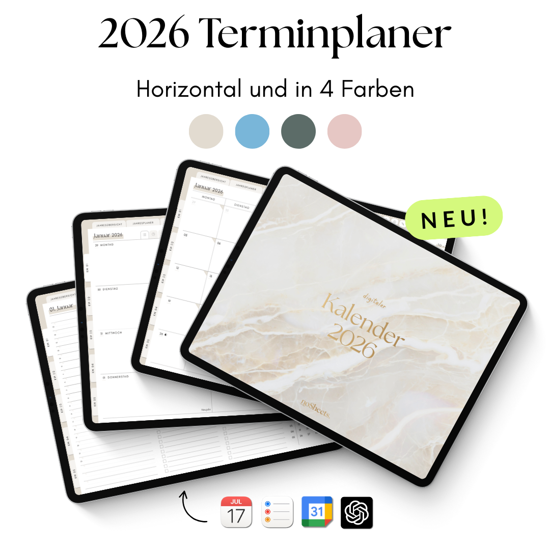 Der Kalender für alle, die ihren Alltag gerne digital organisieren: Mit dem noSheets Planer 2026 behältst du Termine und Aufgaben mühelos im Blick – auf Tablet oder Laptop.