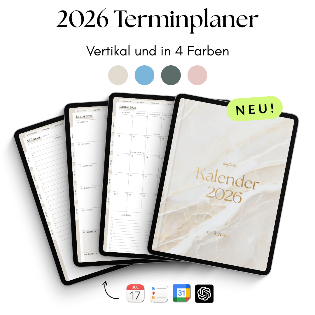 Der Kalender für alle, die ihren Alltag gerne digital organisieren: Mit dem noSheets Planer 2026 behältst du Termine und Aufgaben mühelos im Blick – auf Tablet oder Laptop.